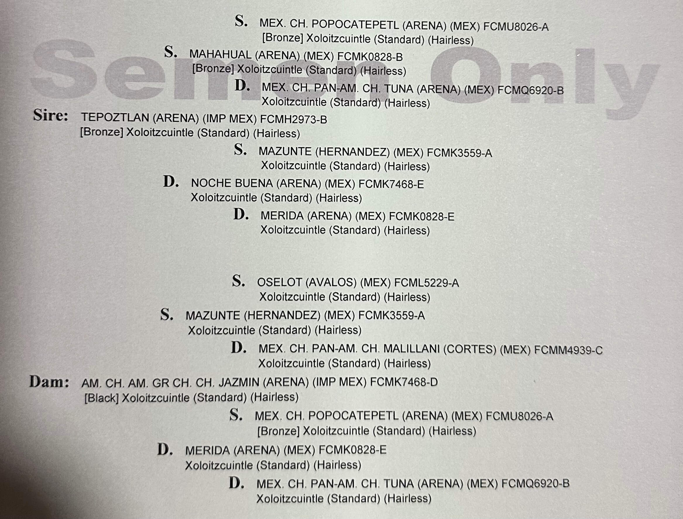 | Sire : | S: | S: |