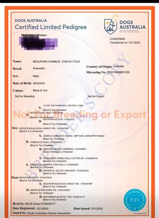 Dogs SA Member: 5100040417