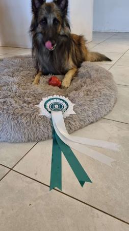 Of the four varieties of the beautiful Belgian Shepherds we have fallen in love with the magnificent Tervueren. What stands out most in the appearance is the red fawn colour with the black overlay of the long hair, which makes the male Tervueren looks like a king. Also and most importantly we love the mentality of the Belgian Shepherd. This dog is so keen and will work hard to please you in any sport or activity you choose. The love and passion they have for the family will make them follow you were ever you go and they will protect the family and your property. This is not a dog for the family who only wants a family pet, this is a dog that wants to work and work hard, they will then reward you with a nice cuddle on the couch afterwards. It is our goal to breed healthy, mentally strong, and good looking Tervueren.