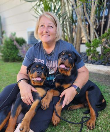 We bought our first Rottweiler in 1985 and started showing in 1986. We bred our first litter in 1989 which started our lifelong love of this breed. We pride ourselves on breeding puppies of correct type,sound body and mind for us to show and breed on from and to place in loving family homes. We test for hips,elbows,eyes and bite as well as JLPP and LEMP. We do not breed many litters so it is necessary to be on the waiting list. We have Kauriland/Brookvale(NZ) /Cleandra bloodlines. We have a wealth of knowledge and experience to share with our puppy buyers. We have been in the show world for a long time and our dogs consistently do very well as can be seen on our "Ebonhaus Rottweilers" facebook page. Deborah has ANKC Championship Groups 6 & 7 judging licenses and is qualified to judge Rottweiler Specialty Shows. We are members of the Rottweiler Club of Qld.Inc.,Northern Districts RC of NSW, Life Members of Ipswich KC Inc., Brisbane Valley KC and Beaudesert KC. We are proud Ambassadors of Pet Mince Direct and Rottwear ( Ivee and Sundae Rose are Ebonhaus girls!! )