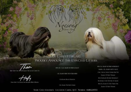 NGESONG Lhasas are proud to announce of our girls Miah n Holly’s litters From 7 , We have made our choice for the Show Ring and now have 2 boys 3 girls available Expressions of Interest now being taken, Please Contact us (Gayle or Kim) ### We do allow the puppies to be paid off over time BEFORE LEAVING @ 10 / 12 weeks Pups will be ready for their “New Forever Homes” April 22nd The Stud n Bitch come from impeccable lines —- Stud has European Bloodlines, and comes from a family of Supreme Champions and A20 Champions. Bitch has Similar Bloodlines All Pups WILL BE — FULLY Registered Dogs Qld DNA ed Health Tested, Full 2 x Inoculations, They come with 4 weeks Free Insurance through Trupanion, Puppy Packs of Goodies