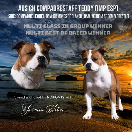 DOGS NT Member 8000882619 Please contact Dogs NT on email: info@dogsnt.com.au to verify my membership. *** Taking expressions of interest *** I’m very excited to announce a successful mating between Am Ch Aus Ch Absolute Multi Platinum Thriller (imp USA) and Aus Ch Compadrestaff Teddy (imp ESP) these pups will have full import bloodlines born in the Northern Territory.. Parents are dna tested clear of genetic and hereditary disease If interested please email noriontstaff@outlook.com My staffords are my family who are raised and live in the family home and live the best life. Puppies to be raised in the home environment and leave to their new homes at 8 weeks of age. Puppies will go to their furever homes Dogs Australia (ANKC) pedigree papers Microchipped, Vaccinated and Wormed Vet health checked Puppy pack with puppy folder Commencement of toilet training, doggy door training Interstate transport can be arranged at buyers expense.
