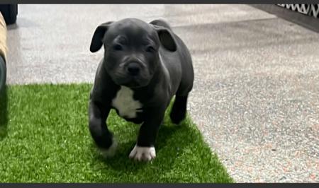 We breed blue Staffordshire Bull Terriers with 1 boy and 3 girls. Our staffy's are well loved and part of our family. Pups will be brought up in our home and have a large garden to play and explore during the day. All pups are well socialised with adults and small grandkids. Pups will receive basic training with sitting, wait, recall, food sharing and hand fed for gentle feeding. De-sensitize for touch, noises including interstate flights sounds and crate training. Toilet trained on toilet trays in indoor playpen. Pups are L2 HGA, HC, DM DNA & hereditary cataract clear by parentage Pedigree papers for pets provided. For photos and pricing visit facebook page pin-up @ English Staffy's Blubark Kennels. We are located in Stirling North via Port Augusta not Stirling Adelaide Hills. Buyers will receive weekly photos and updates of their pup up until 7 weeks of age. Member Dogs SA and Port Augusta Dog Club participant