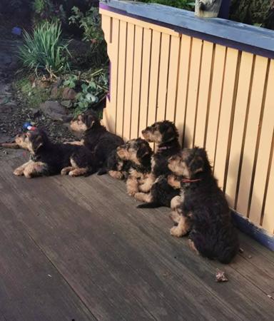 I've had the pleasure to have, love and raise Airedales for the last 20 years and, have bred them for 6 years. All my dogs have worked as pet therapy dogs in Aged care. Previous litters have been raised in my home with several of their family members. I breed Airedales as family pets for their loyalty, intelligence, loving temperament and happy nature. Airedales are good with children and other pets. Puppies are desensitised to as many situations as possible and, for socialisation. This is Roxyz's second litter and she is a loving mother. My puppies are released to their forever homes at 10 weeks of age after a thorough vetting process. It's important to me to match puppies with the right families to ensure their futures continue to thrive successfully. I will be available for support for as long as needed. Both Roxyz and the stud dog (CH. LOVEABLE TRUMPCARD 11D) have impressive DNA lineages from the USA, AUS, JAP and UKR. Both have excellent hip and elbow scores, have been DNA tested for genetic diseases and, are PLN free. Expressions of interest. Tasmanian enquiries can be made directly to myself at mz.neena.kirkham@gmail.com For all mainland enquiries and transport requirements to John Herron 0402 329 577