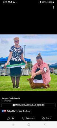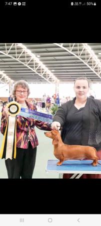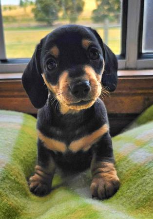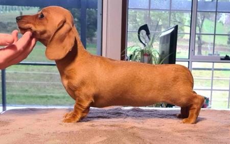When 2 Australian Champions collide we are successfully raising a beautiful litter of Australian Miniature Smooth dachshunds. Both parents titled in Tasmania with lovely SA & Victorian pedigrees. Pups available (after vaccinations) from 22nd March. Genetic testing (view parents results) available. Pups are black & tan, & shaded red available. Delivery available Statewide as excellent homes are paramount. Please Facebook message or email interest to darlenemwilliams2@gmail.com