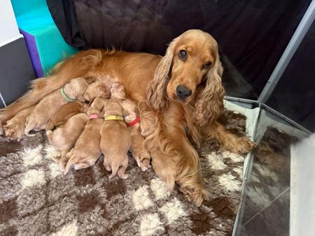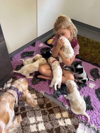 Moleiz Cocker Spaniels is a family based breeder of high quality DNA tested, pedigree cocker spaniels. My name is Monique and I have grown up with cocker spaniels my whole life, I have been breeding these beautiful dogs for the past 7 years, I am also a qualified vet nurse of 7 years. All of our dogs and puppies live with my family inside, we holiday together and my adult dogs are not rehomed once they have retired. All of our dogs are dna tested to ensure they do not pass congenital defects on to their puppies. What do we test for?- PRA/PRCD (Degenerative eye condition) AON (adult onset brain degeneration) FN (Acute kidney failure/ early onset) Shedding gene (high or low shedding) And many many more, which are supplied to each puppy buyer. Our puppies are raised right in our living room which is located in the centre of our house, once they are able to move around they are also able to access their own large puppy outdoor area which has small hills, rock features and natural grass to begin toilet training