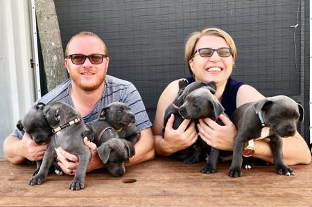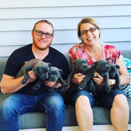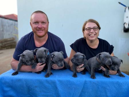 We are a small family breeder that loves our staffy's & have been breeding beautiful staffords since 2019. Rosie (Kingofstaf Rosie Fleur) and Lola (Montyblu Lola Mae) are our gorgeous pedigree girls and we love them endlessly! They are beautiful members of our family. Rosie is black in colour and comes from impeccable blue/black bloodlines. She is a sweet girl with a gentle nature and fun loving attitude. Lola is full of energy, joyful, and playful, and is the 2nd generation in our Montyblu line following mum Willow and Grandma Ivy. If you are considering adding a Staffordshire Bull Terrier to your family please contact us for details on how to join our waitlist to be considered for a Montyblu puppy. montyblustaffys@gmail.com