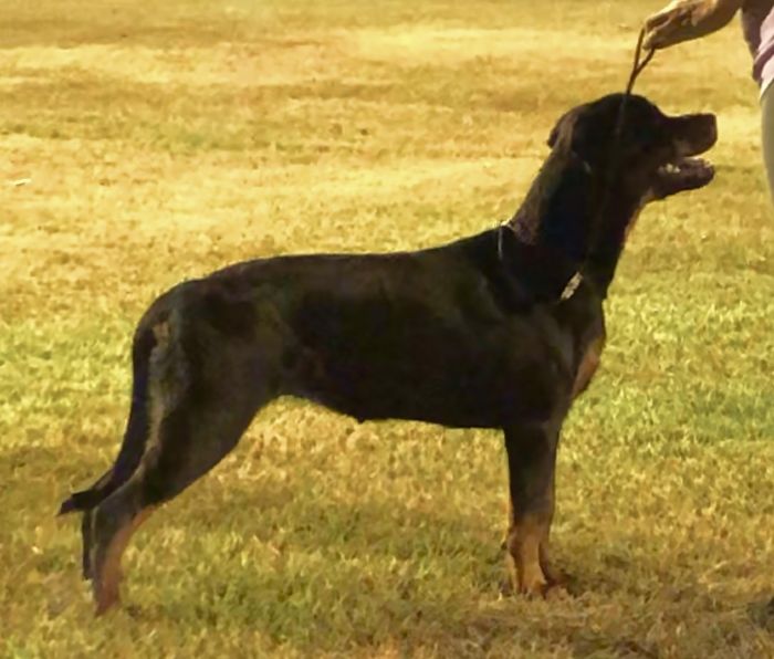 Katie’s pedigree brings together a spectacular combination of world class bloodlines, and there is no mistaking the quality of her breeding. Big sound movement, a correct Rottweiler temperament, and a zest for life were exactly what we were hoping for in this upcoming bitch.