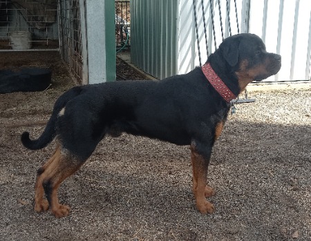 Rolf is not my first Rottweiler I have actually had Rottweiler's since 16 years old when I rescued my first dog a bitch and called her Jessica then I rescued a 2nd and called him Mr Bear (he had a breed tattoo and ended up finding his old breeder) his name was Rinwood Darcy and was my 1st pedigree Rotty.. My love for this breed grew and grew till we fast forward 34 years to our young man Rolf (Winstonmorrs Midnight Cowboy).. My husband and I hope to do some showing and some obedience with him but most importantly we are training him as a Therapy dog (to visit hospitals/age care facilities, Schools etc) to not just promote the breed as the loving dogs they are but to provide comfort, stress release and an animal besides people for vulnerable people to have contact with.. This young dog has the calm even temperament to achieve anything and has been so easy to start his training.