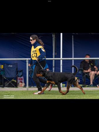 Scooter wins Puppy in Show at Rottweiler Club of South Australia Champ Show fabulously handled by Patrick Chapman-Stevens on 13 October 2023 and judged by Lew Olson (USA)