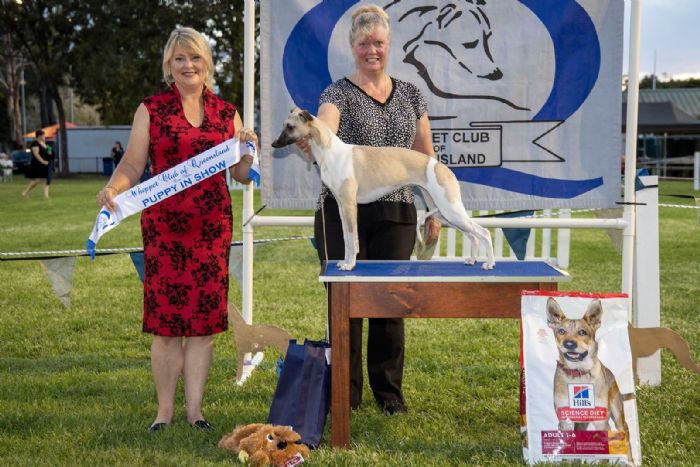 Ava is the older sister of Lorenzo (CH Alarves Its A Jungle Out There) and although outgoing, she has a much calmer disposition than her brother. Ava has only been shown sparingly due to being born during COVID. Ava is a lovely size at 44 cm but she has substance and moves freely and correctly with low & long "daisy cutting" action. She has lovely smooth shape which she holds on the move. Not extreme in any way, Ava shows all the true hallmarks of the Whippet breed.