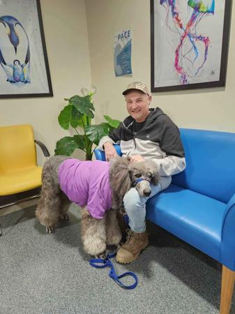 He works as a therapy dog in a rural hospital and has the ability to immediately put a smile on the face of people who may not be having their best day. In his role he is known as the "Director of Joy".