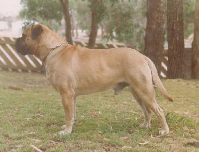 He is the sire of the first litter brothers to be awarded All Breeds Best in Show, Nightwatch Placid Ark in WA & the other Ch Nightwatch Vo Rogue in Qld. Progeny from this litter also won multiple specialty Res CC's, with Ch Nightwatch Vo Rogue winning his from the puppy class under Mary Cox from the UK. His daughter Ch Nightwatch Lady Nikita won the CC at the 1st NSW club championship show in 1991 & the Res CC's to her half sisters in NSW & Vic in 1994. Nightwatch Shergar was the only Bullmastiff to place at the finals of the KCC All Breed Guineas Final at the Melbourne Royal Show.