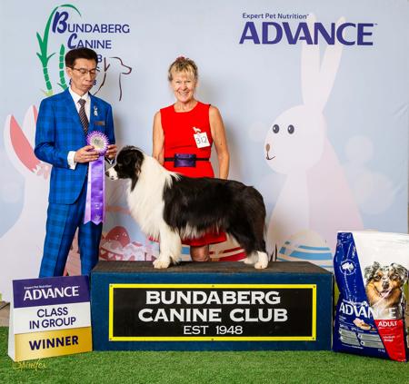 Lucky attained his Australian Championship title just before his 15 month birthday. He has a lovely temperament and is maturing nicely into a lovely type border collie. Standing at 20 inches in height, he has strong bone, a very handsome head and a beautifully shaped border collie body. His coat is to die for. Straight, profuse and wash and wear.