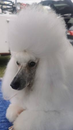 Gidget is our first White Mini. She has an outgoing personality (just like her Mother, Minke) and is a joy to have around.