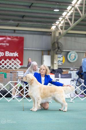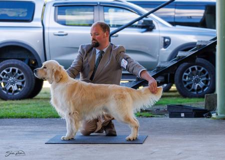 1st Junior Dog & Opposite Junior In Show to his litter sister at the Golden Retriever Club of NSW Specialty August 2023 under Gordon Kipps (Wheatcroft Golden Retrievers, UK)