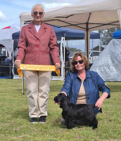 My thanks to Vicky Spangler for sending me this delightful girl. She is loaded with every quality you could ask for in a cocker, and her temperament makes her a joy to both live with and take anywhere. She loves the show ring (a little too much!), and is doing well, now that she is finally learning that she is not supposed to cuddle the judges! Maggie has gained champion title at 14 months of age.