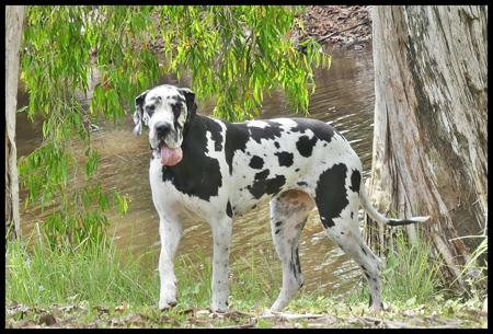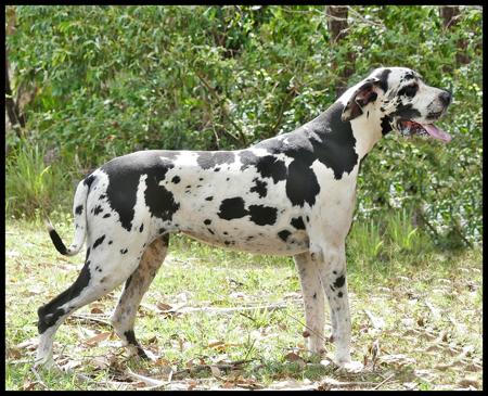 Miss Freya is an extremely well-marked harlequin girl of powerful and solid conformation.