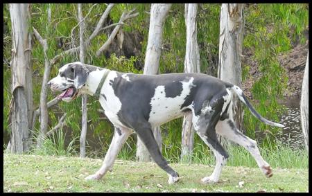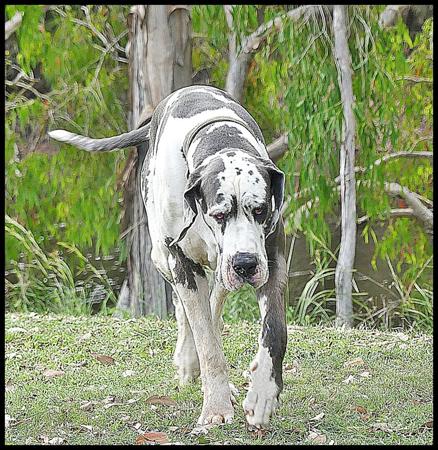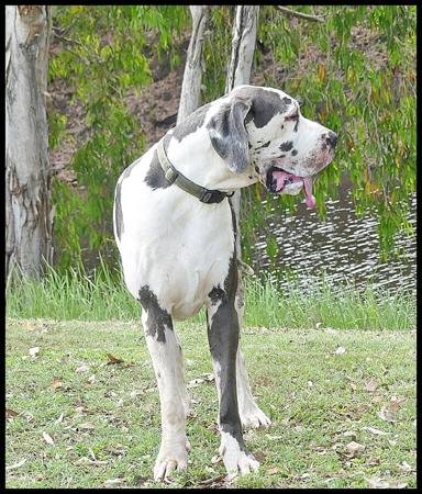 However, the reality is that Oannes is just a baby puppy in a very big dog’s body that is full of love and fun. All this stunningly marked Blue Harlequin boy wants is cuddles and kisses, and opportunities to play nonstop with his four legged friends.