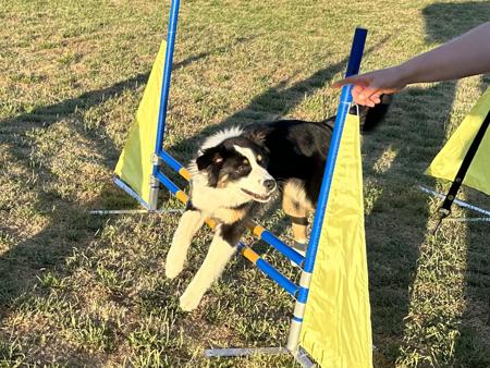 Equally happy to be diving off the dock into our dam or just having fun working with the dogs in our social classes. JoJo is confident, agile and full of bounce... a true character with working ability..