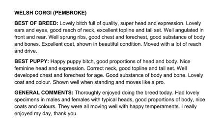 | D: Ch. Breconmohr Southern Belle | S: Ch. Anwyl Leave Thelast Dance Forme | |