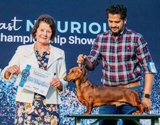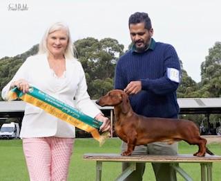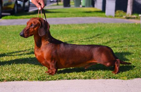 | D: CH.BOSKAHUN ATHENA ETCHED IN GOLD5100083067[RED]DACHSHUND[SMOOTH HAIRED] | S: SUP..CH.HAMPDACH ZEUS[IMP UK]AH04800804[RED]DACHCHSHUND[SMOOTH HAIRED | |