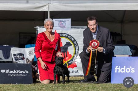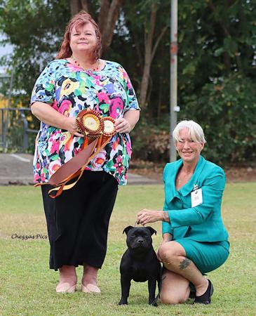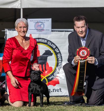 She continued her success by winning Puppy in Show at a further specialty shows and went on to obtain her Australian Championship Title just prior to 11 months of age. Additional achievements include Top Terrier at the Townsville Kennel Club, Puppy of the Year at the Sarina Kennel Club, Number One Staffordshire Bull Terrier Puppy in Queensland, and Number Four Nationally.