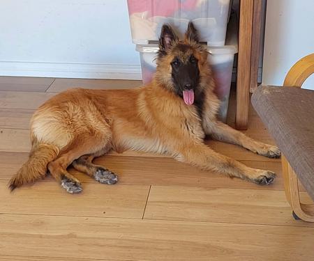 His first mating was succesful with 7 red puppies born on the 21/10/2025.
