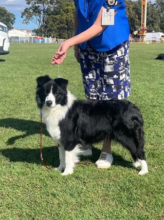 She didn't enter the show ring until she was 8 months of age and at only her second weekend of showing, she was awarded Puppy In Show and Res Bitch CC at the Border Collie Club Of Qld Ch.Show under breed specialist, Ms Elain Saxon (Maghera Kennels, Victoria) as well as Puppy In Show at the Border Collie Club of Qld Open Show.