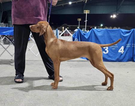Cadi has now placed at the 2026 Vizsla Club of America Nationals in Temecula, CA in her Sweepstakes and Class. I am so proud of her.