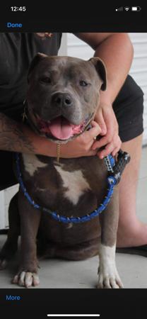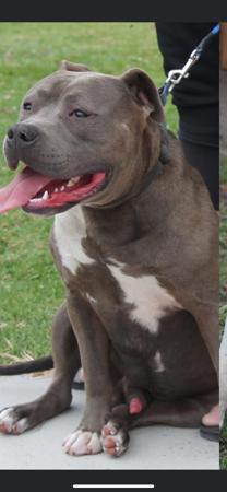Ghost is a strong, well-balanced male American Staffordshire Terrier with excellent structure, temperament, and presence. He is a much-loved family dog who lives on acreage with our family and children, displaying a stable, affectionate nature and great confidence.