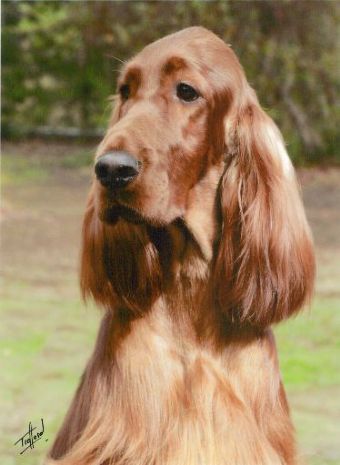 She achieved her Aust title easily & was together with her half brother "Foggy" a team to be reckoned with. Achieving Grand Ch status in record time also, she now just makes special appearances @ big shows. In 2012 she was Runner Up @ The Irish Setter Specialty of Vict from the Veteran bitch class ! A lovely daughter of "Alex" Ch Pendoric Perfect Thyming"& "Ari" Pendoric Angels Kiss (who has produced a Specialty winner & 4 Ch from 2 litters) she has shown her true heritage ...