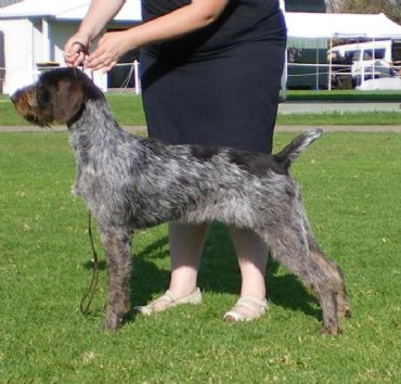 From our 2nd Napoleon MULTI BIS Winner & # 1 GWP 2006 /2007 & Nike Litter we are now campaigning Moruada Madame Mimi. Her coat is excellent & we are thrilled to bits with her delightful temperament. Her sensational movement, bone, angles & breed type is what we are striving for in our German Wirehaired Pointers. Already a Baby in Group winner & Sweepstakes (26 entrys) winner + a 4th Place in The Stars of The Future SS with 45 All Breeds Puppys entered, Multi In Group awards as well.