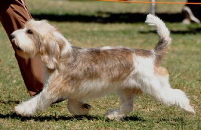 Parisis one of our 'stars' on the show scene. She is 'Mr Wilson's' sister and like him is a showy, well balanced PBGV of excellent type. She made a name for herself in the ring with number of BIG and 2 RU in Group awards before the age of 10 mths. She gained her title very easily and has continued to accumulate a number of Best in Hound Group awards as she has she matured into a lovely young bitch of great type and gorgeous movement that almost always seen her run for the Group.