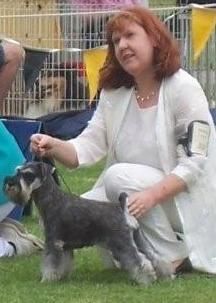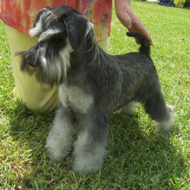 Gabbie is from our wonderful sire (Brag) and highly successful dam( Vanity) who have given her great attitude,super harsh salt and pepper coat,correct size and effortless movement and she oozes schnauzer type.