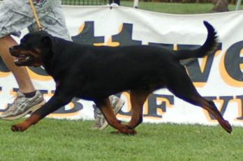 Kharma is a member of the impressive Ubersein "V" litter. Shown sparingly, he is a Multi Class in Specialty show winner and achieved his Championship title aged 15 months. At his first Specialty Show (the 2008 National with over 200 Rottweilers entered) he was Dog Challenge at the tender age of 8 months. After a number of subsequent class wins and V1's, Kharma took out Best In Show at the October 2009 South Australian Specialty under respected breeder/judge Dr Roberta Veale (Aust.)and again Best In Show at the Rottweiler Club of Victoria October 2010 Championship Show