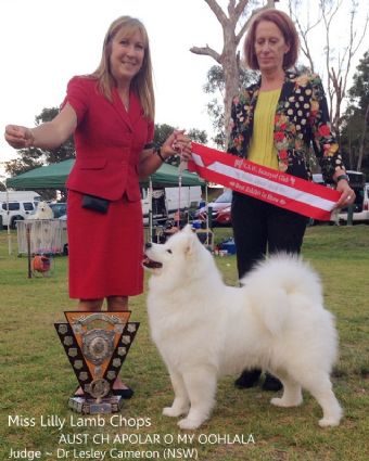 Miss Lilly won Challenge Bitch and Runner up Best of Breed at the Sydney Royal Easter Show 2014 .. Judge Mr Frank Kane (UK) .....Lilly is the Winner of the NSW Samoyed Club Point Score 2010 ~ 2011
