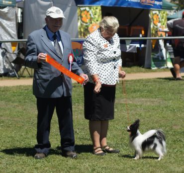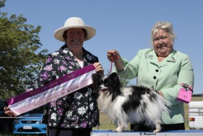 Austin moves beautifully and is a very typy, dainty Papillon with a temperament to die for. We love Austin here at Guilcroft He has had a change of fortune and as a result he has had to be moved to the neuter register. Still because of his type and quality we have made the decision to show him as a neuter and we look forward to his success in this area. overall he seems to be enjoying being back in the ring and the pampering that goes along with it and Pamela is enjoying handling him and having a great time.