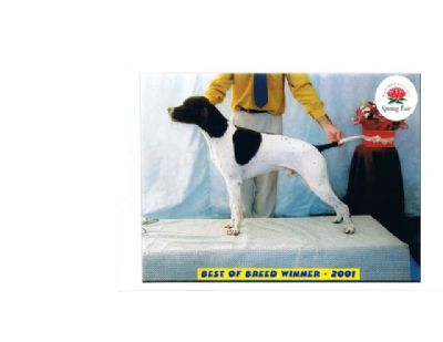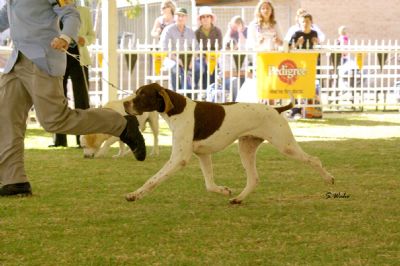 Winning Best of Breed & Puppy in Group at the Spring Fair under world renowned Pointer Specialist Mrs Hilda Parkinson (Davium)