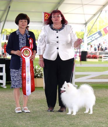 Easter 2015 - Prince is awarder Best Exhibit in Show at the Japanese Spitz Club of NSW Easter specialty!! Judge was breed specialist Mrs S Ideka of Japan!!!