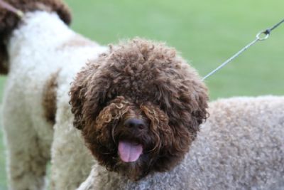 Mimi’s father is Nostryffelns Federico, a truly handsome brown lagotto with fabulous curls, wonderful Italian parents, and some very promising results. Mum is Comes Cordis Kaprice “Luna” who is a beautiful, affectionate, and compact brown and white female with some wonderful dogs behind her. Both of Mimi's parents have A hips and are JE free.