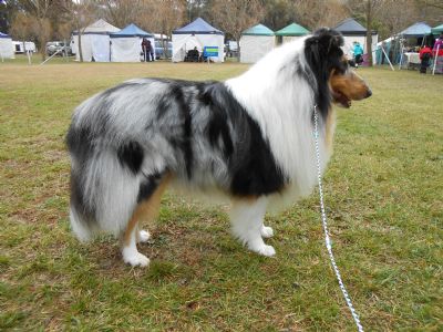 This is my little man Stormy, i have owned Sable & Tri Collie Roughs before & now my Tri girl is getting very old i decided to look for a Blue Merle pup.. After searching for a few months i saw this pup & he came straight to me it was love at first sight. I named him Stormy from the storm i saw on the way to see him it looked a light blue colour with black clouds over top, just like him. The breeder after hearing his call name named him after this. Although i have owned a lot of Collies i have never shown them, so giving it a go & both Stormy & I are loving it. It is such fun & out of 5 shows he has already got two 1st's two 2nd's & a 3rd. More importantly we are having fun & making friends both human & doggy. He is slowly maturing & we are both still learning about showing but hope to achieve more as we both learn more & he matures. This dog is so special to me as he is so attached to me & loyal also he is related to 3 of my previous Collies which is even more special to me.