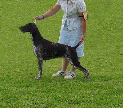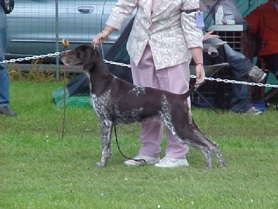 and we started showing her in August 2002, since then she has won, 3 BIS at GSP specialties one in S.A. and two in Vic.She has won an all breeds BIS and 3 RUIS and Bitch CC and RUBOB at the Melb. Royal under A GSP Specialist,90 entries. Jade finished her Grand Title with a RUBOB at the Adelaide Royal 04.We are very proud of this beautiful bitch.