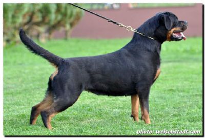 Jule comes to Valstam from good friend Dennis Stavropoulos at Entfernland Rottweilers. Jule is the product of intense line breeding on some of Germany's best blood. Jule has a successful show record throughout Europe boasting 3 x BOB and has proven herself on the working field obtaining an IPO1.