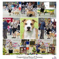 Harmony became an Australian Champion at 10 months. She has been the Rising Star leader in Australia for American Staffordshire Terriers and WA Terriers.