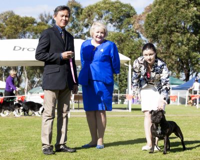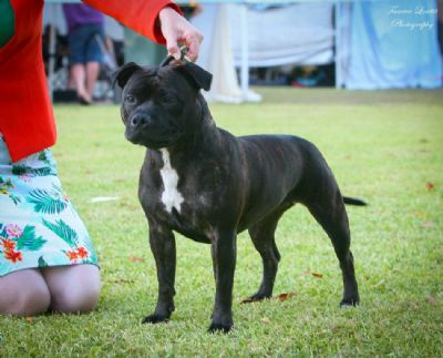 Aust Ch Stafforce Brindle Babe. L-2-HGA / HC Clear