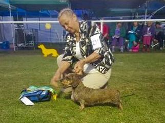 We thank Ellen Blackburn at Stargang Kennels UK for letting us have such a special mini wire haired Dachshund as Pansy Potter. This lovely girl is always a delight and has done us all proud by excelling in all fields whether it be the show ring, lure coursing, hunting for lizards, fun obedience demos, mini agility, or motherhood! Although now rising 8 years old she is still highly energetic and enthusiastic about everything.