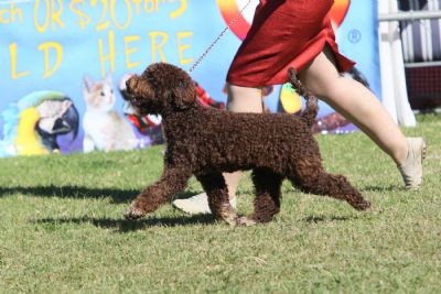 Our new little star wins Baby in Show at Kalbar under Lagotto Specialist All Breeds Judge Mrs Rena Henderson.