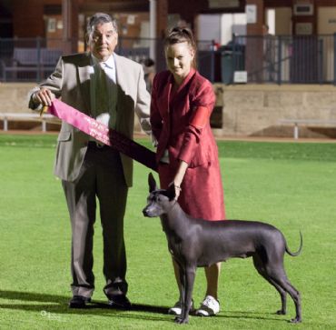 Wazzat Xolo has a new addition to the show team, from well known Xoloitzcuintle breeder Mona Friberg of Local Heros kennel we introduce "Filipa" local Heros Filipa. With an outstanding pedigree of Multi WWs we have high hopes for the continuing education of the breed in Australia with this baby who came here at 12 weeks and left quarantine at 16 weeks. very pleased at her THIRD show goes Baby Puppy in Show under Kerry Cannon (NSW). Filipa has continued her journey with numerous Baby, Puppy, Minor and now Junior in Group awards, adding a few in show as well. We are currently training in Obedience with Filipa