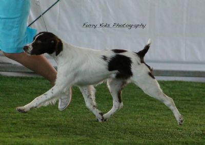 Not only is he a Liver & White Brittany with a natural short-tail he has now qualified for 2014 Qld Puppy of the Year.